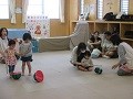 最後に、今月の親子の振れ合い遊びでは、すいか割りと新聞遊びを楽しみました。