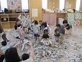 また、新聞遊びは、ゲームやビリビリに破って感触を楽しみ、たくさんの新聞に埋もれてみたり、雪の様に降らせて親子でおもいっきり楽しんでいました。