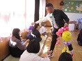 風船が準備され、いつもと違う雰囲気雰囲気雰囲気に興味津々の子どもたちは。まず初めにHIROさんのバルーンパフォーマンスを見ました。